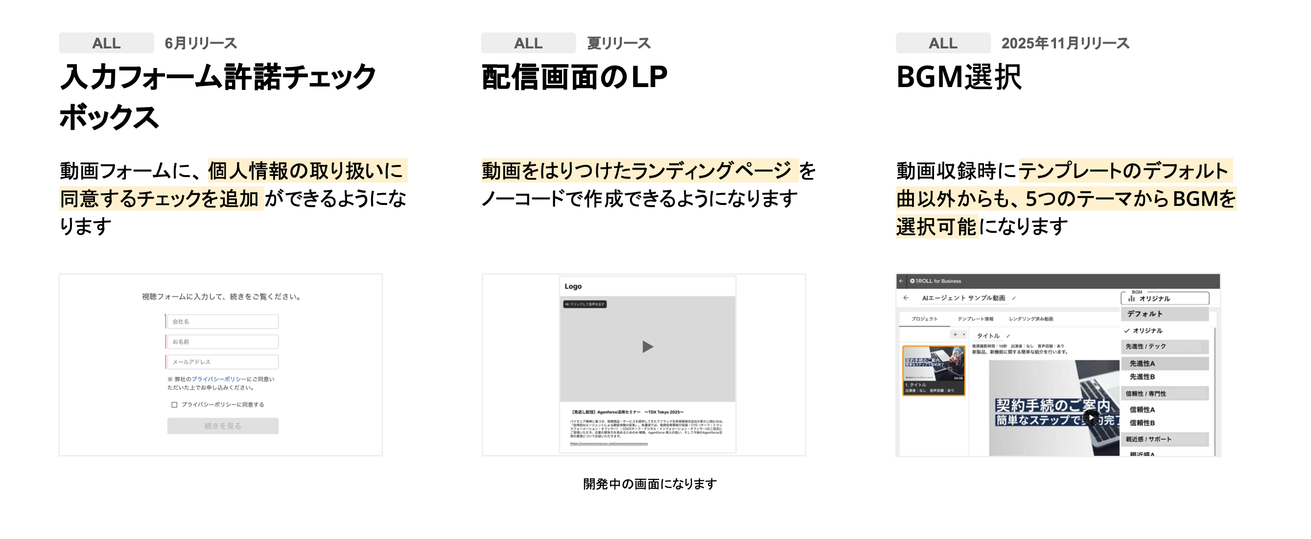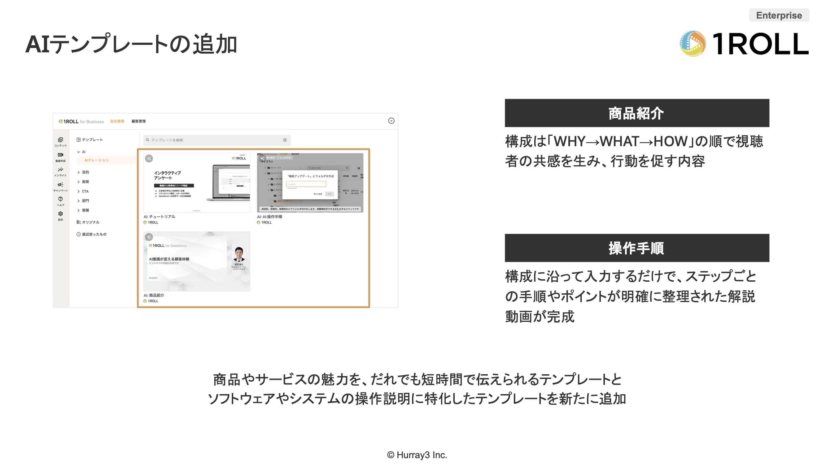 こうした環境変化を背景に、1ROLLでは営業・マーケティング・サポートの現場で「すぐに成果を実感できる」AI機能を拡充し、新製品「1ROLL for Agentforce」、AI動画作成ロードマップの案内などを発表しました。